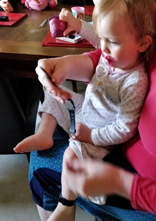 Using the actigraph is extremely simple. Just put it on the ankle of our infant participants, like you would a watch, and the actigraph will start recording automatically. There are no lights, beeps or buzzes to interfere with regular day-to-day activity and the only input we require is for the grown-ups to note down what time the infants went to bed and got up the next morning.